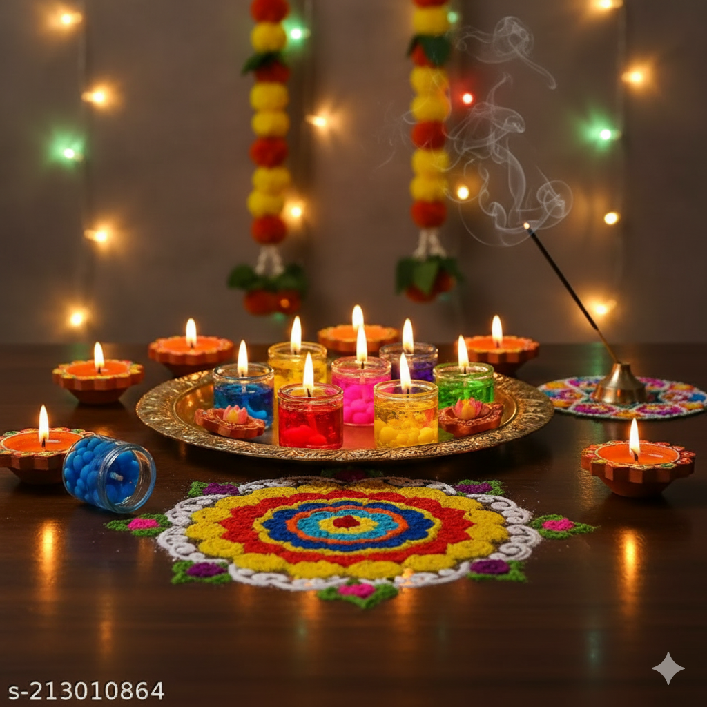 Multicolour Glass Jelly Gel Candles – Pack of 12 | Smokeless, Decorative for Diwali