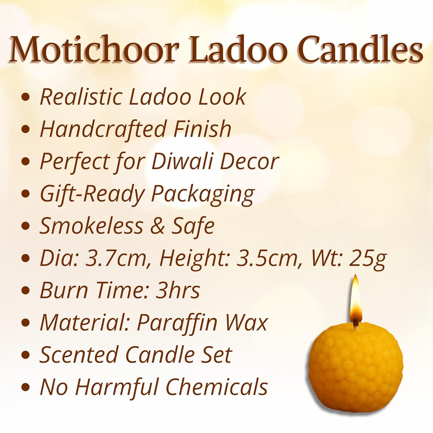 Premium Ladoo Candle for Diwali - Decorative Candle 100% Paraffin Wax || Set of 6
